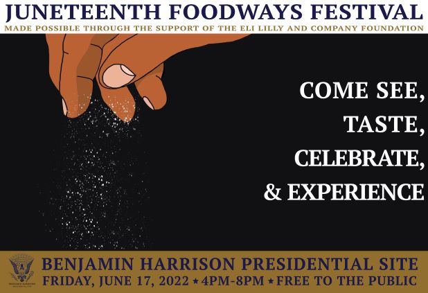 Juneteenth Foodways Festival, made possible through the generosity of Eli Lilly and Company Foundation, features an interactive food experience highlighting the hidden history of diverse Hoosiers from the 1860s-1890s from the perspective of African-Americans. It shares Black foodways contributions to American culture with a focus on Dolly Johnson, the White House Chef hired by President Harrison.